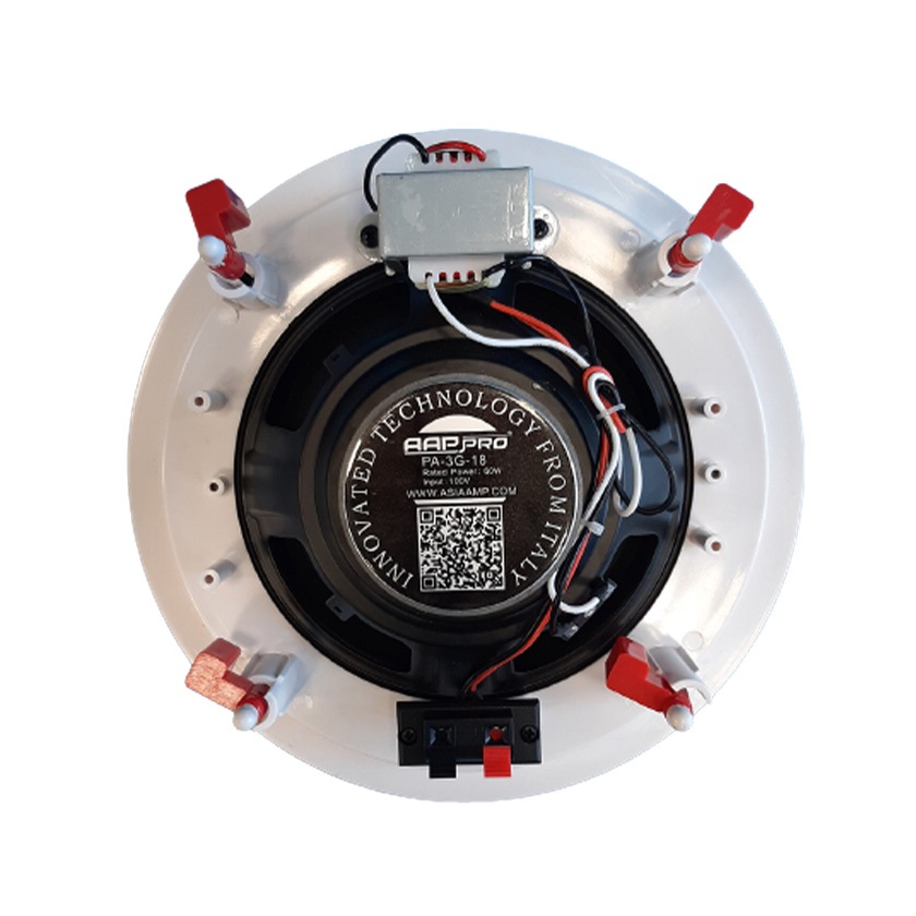اسپیکر سقفی توکار آسیا امپ Aap Pro PA 3G-18 بلندگو توکار فول رنج از کمپانی Asia Amp می باشد بلندگو سقفی آسیا امپ 3G 18 یک بلندگو با فرکانس پاسخ گویی بین 100Hz-16KHz و ووفر 8 اینچ میباشد. این اسپیکر سقفی از سری مدل های 3G میباشد که دارای محبوبیت زیادی میباشد.