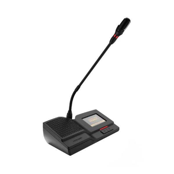 در این محصول نمایشگر رنگی با کیفیت لمسی به کار رفته که عملکرد را سادهتر و دسترسی به اطلاعات را جذاب تر می کند. این میکروفون کنفرانس به سیستم کنترل خودکار دوربین متصل شود و همچنین می توان نام شخص صحبت کننده را در پنل تاچ میکروفن های دیگر دید. از دیگر ویژگیهای مدرن این میکروفن اتاق کنفرانس میتوان به تنظیم خودکار سطح صدا (AGC) با انتخاب فعال یا غیرفعال کردن آن و قابلیت رایگیری 3 گزینه ای (بله، خیر، ممتنع) و نظرسنجی انتخابی با قابلیت 8 انتخاب اشاره کرد.
