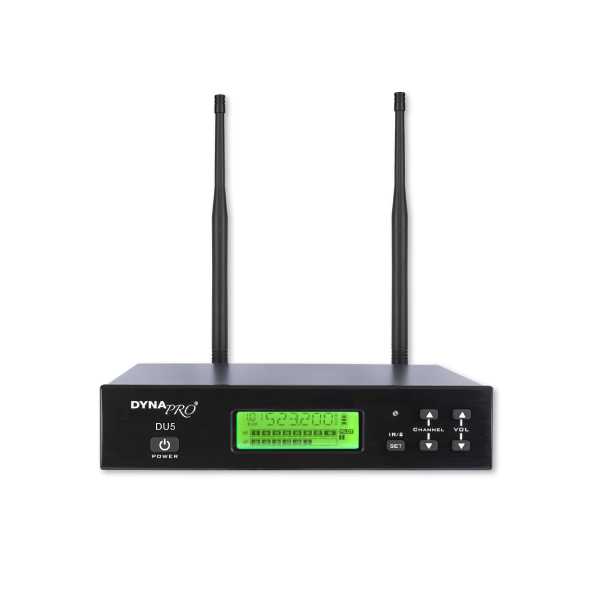 میکروفن بیسیم هدمیک دایناپرو DYNAPRO U5 دارای مجموع ۱۰۰×۲ فرکانس قابل انتخاب برای هر میکروفن (مجموعاً ۲۰۰ فرکانس)، شما از انعطاف بینظیری برای یافتن کانالهای شفاف و بدون تداخل است.