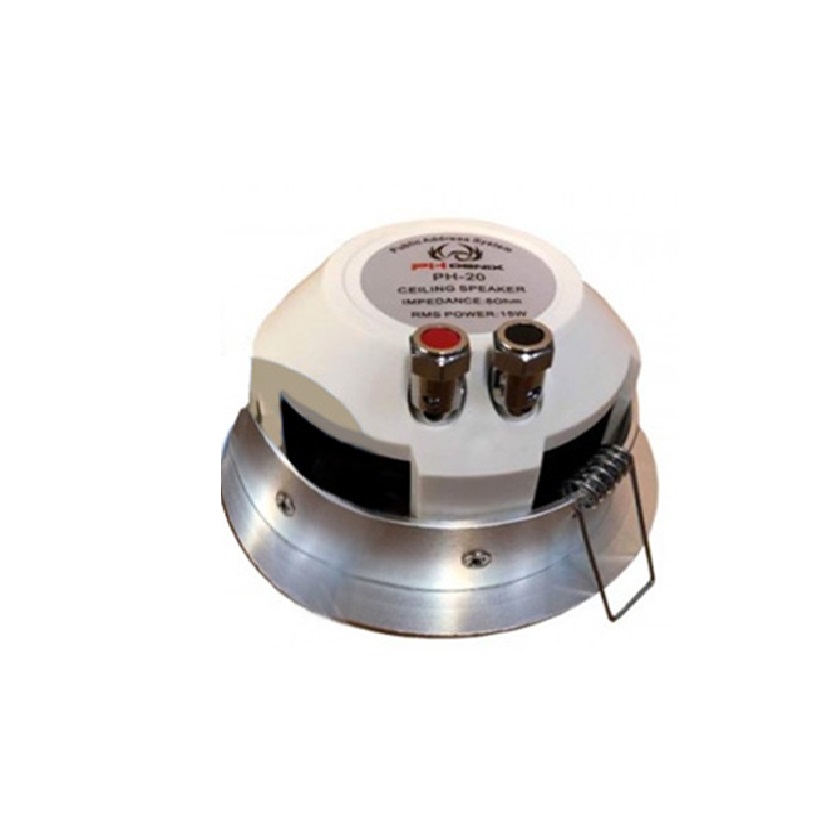 بلندگو سقفی هالوژنی توکار فونیکس PH-20 با توجه به طراحی فول رنج دارای کیفیت پخش مناسب و بدون بیس صدایی میباشد که در مراکزی که نیاز به پخش موزیک پس زمینه دارند و نیاز به بیس صدایی ندارند مورد استفاده قرار میگیرد.