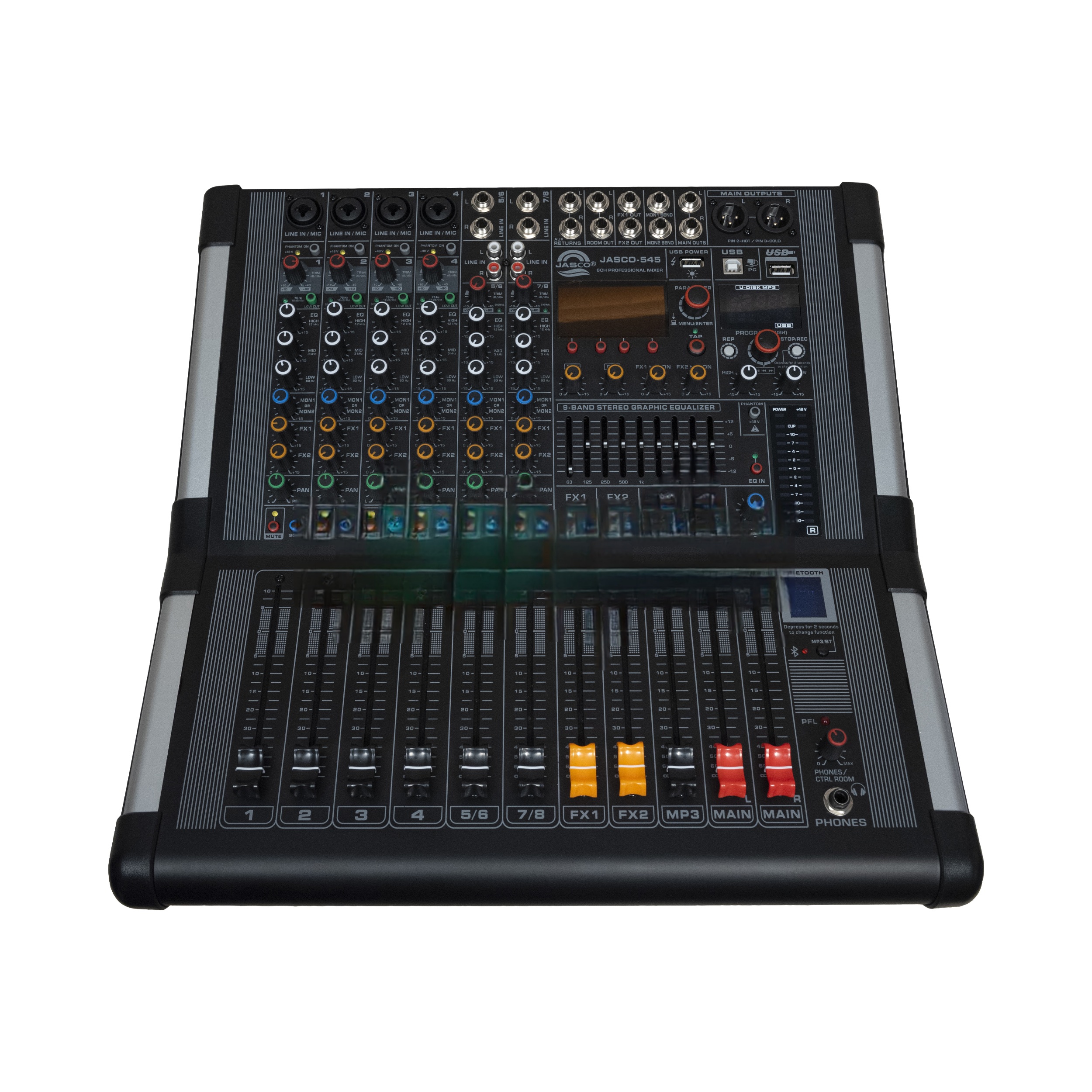پاور میکسر جاسکو 545 Jasco دارای 8 کانال پرقدرت، 6 ورودی میکروفن، اکولایزر گرافیکی 1 باندی است. افکت اکو با ولوم مجزا و ولوم زیر و بم صدا برای هر لاین به صورت مجزا از ویژگیهای اصلی پاور میکسر جاسکو 545 محسوب میشود. این پاور میکسر مانند پاور میکسرهای دیگر جاسکو مجهز به ورودی AUX، فلش USB و SD CARD میباشد.